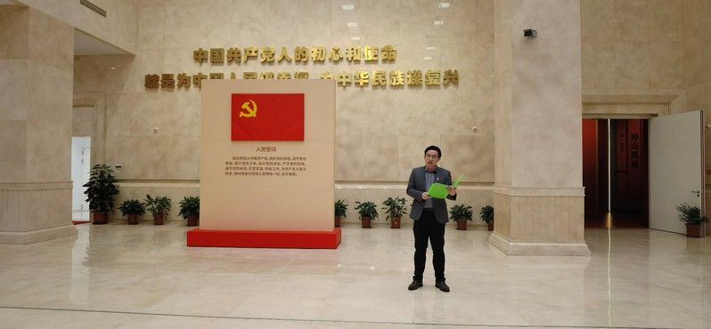 在渡江胜利纪念馆大厅,马克思主义学院博士生陈正辉作题为“百万雄师过大江,亿万人民得解放”的主题党课。他对渡江战役的历史进行了简要介绍,并对渡江精神的历史意义与内涵特质进行了深入解析,倡议在场同志们要传承红色革命基因,深刻把握习近平新时代中国特色社会主义思想的历史逻辑,坚定历史自信、增强历史主动,努力为全面推进中华民族伟大复兴贡献力量。
